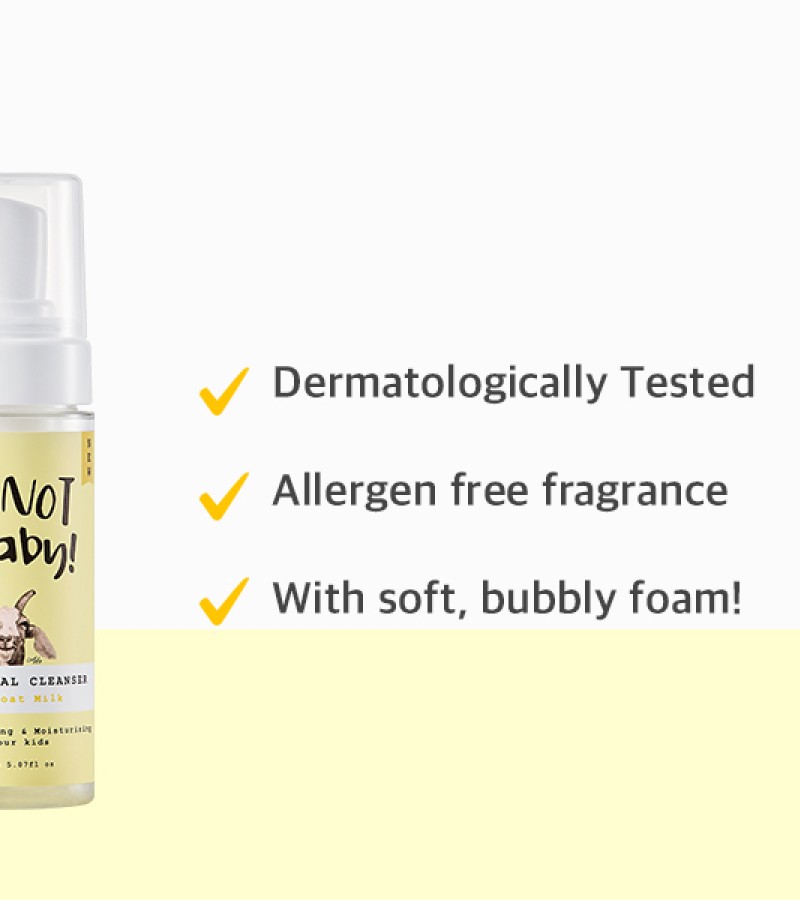 I’m NOT A baby! kids facial cleanser with goat Milk 150ml l Dermatologist Tested l Cruelty-free l Allergen-free fragrance l Goat Milk l Gentle for Kids Sensitive Skin
