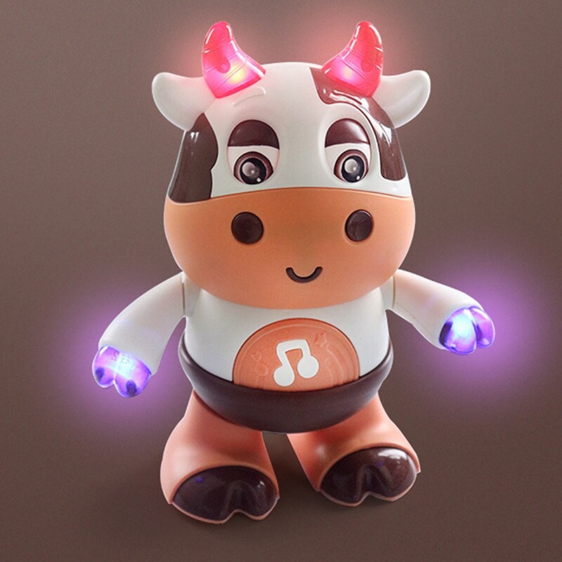 Cvurire【Ready!】Dancing Cow Musical Toys Educational Learning Toys Swinging Cow Robots Sound Light Dancing Niu Kids Gifts For 3 Months+ Baby
