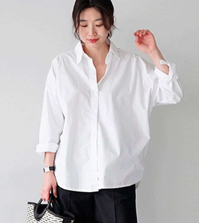 Loose Spring Korean-Style Cotton Instagram Shirt with Long Sleeves