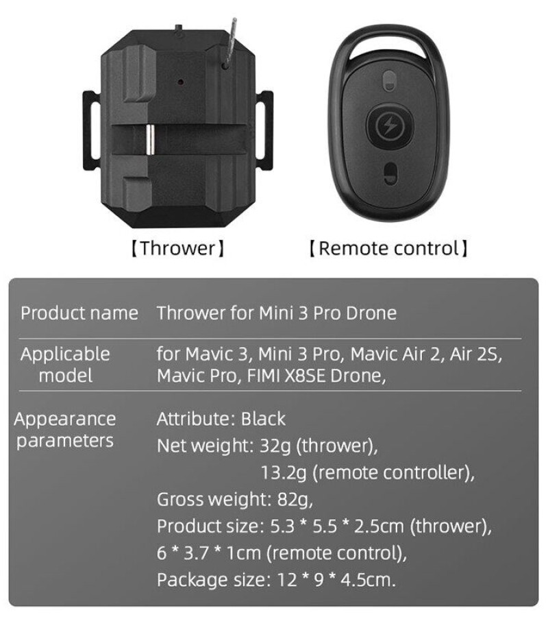 • Drone Weight:Thrower Airdrop for Mavic 3, Mini 3 Pro, Mavic Air 2, Air 2S